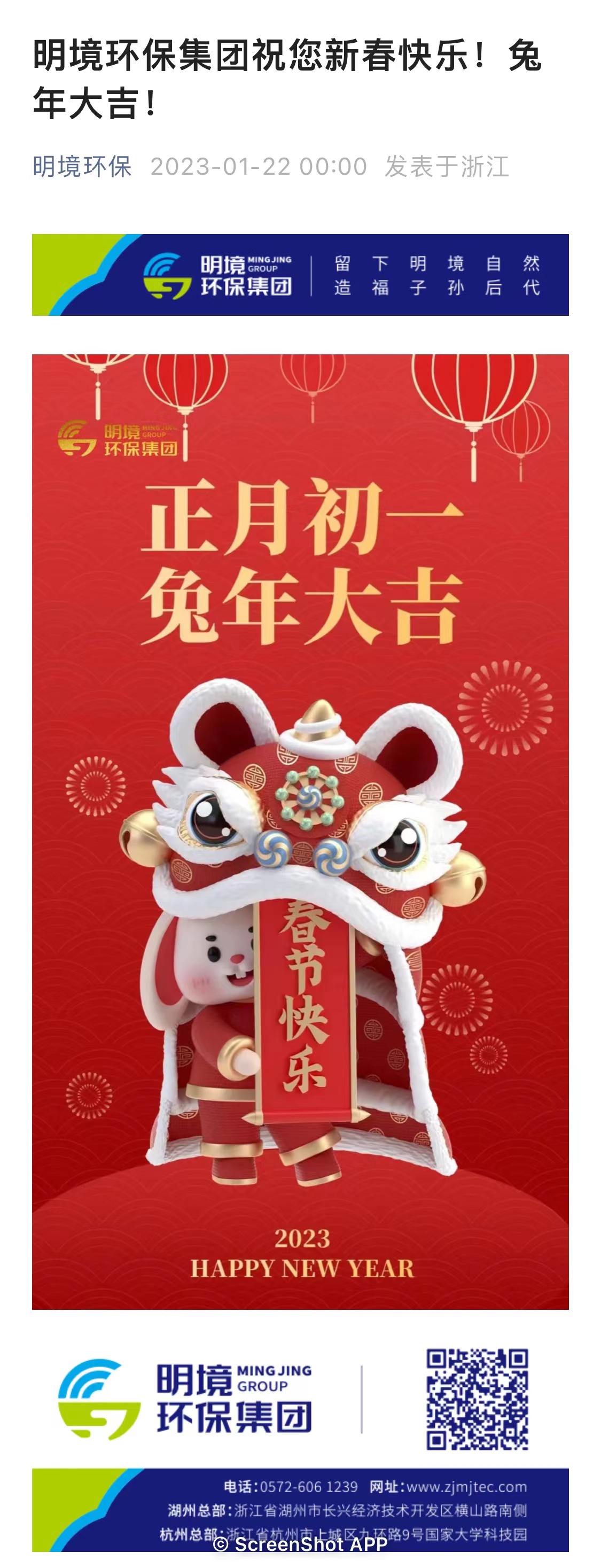 明境環(huán)保集團(tuán)祝您新春快樂!兔年大吉!